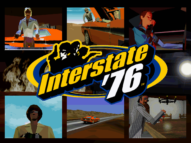 Aside from an arm on the steering wheel, a hand on the CB or an arm pointing a gun out a side window, the characters are only shown in prerendered cutscenes. This was due to the game engine's technical limitations. The figures were constructed of colored but untextured ("flat") polygons. Combined with 70's fashion, this gave the game its typical look. Part of Interstate '76's introduction takes the form of opening credits for a television action series. In this cutscene, each of the characters is credited to a fictional actor.